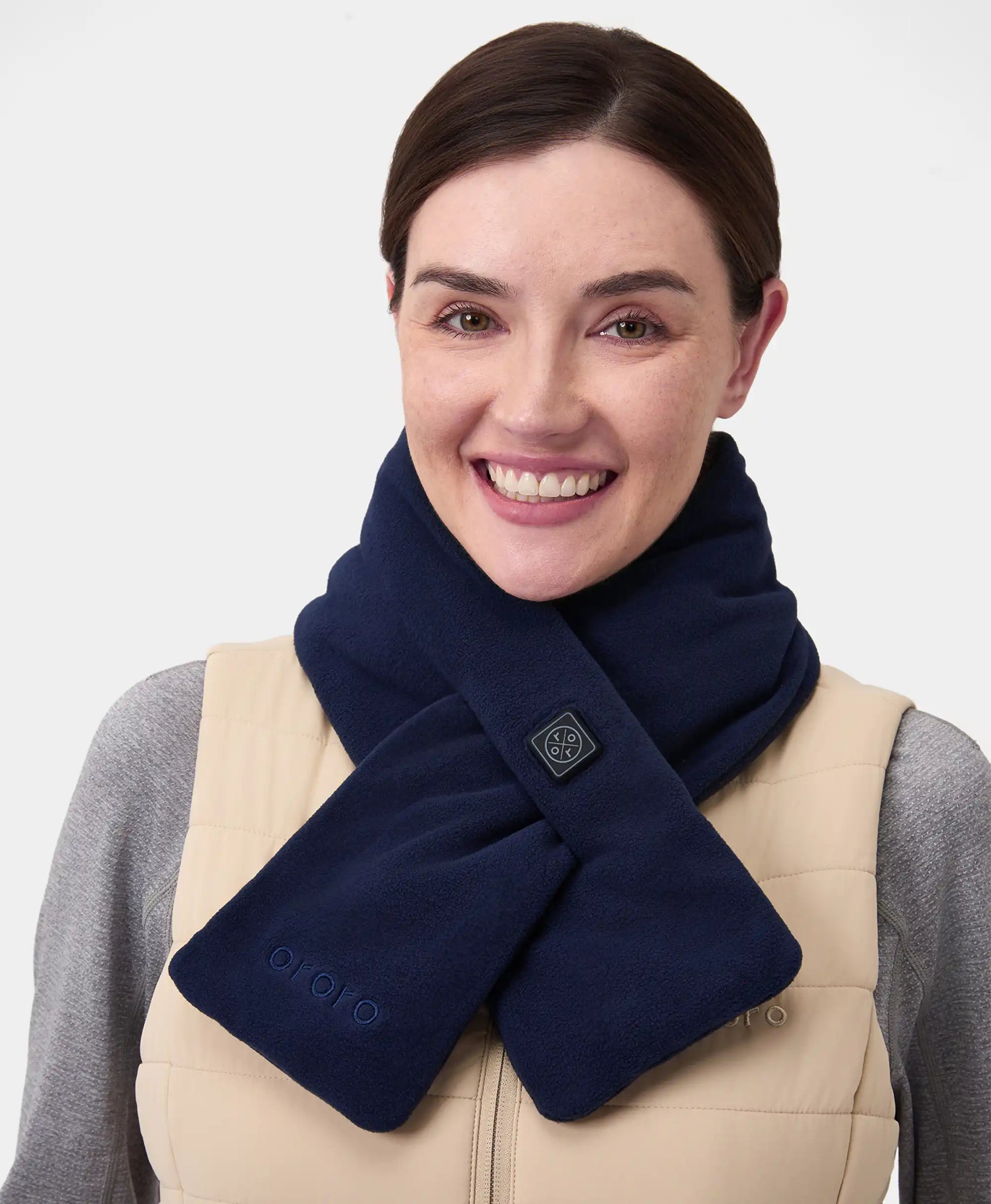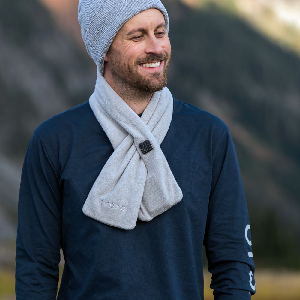- Der Akku ist leicht und lässt sich problemlos in die versteckte Tasche mit Reißverschluss an der Unterseite des Schals schieben. Kein Ballast um den Hals.