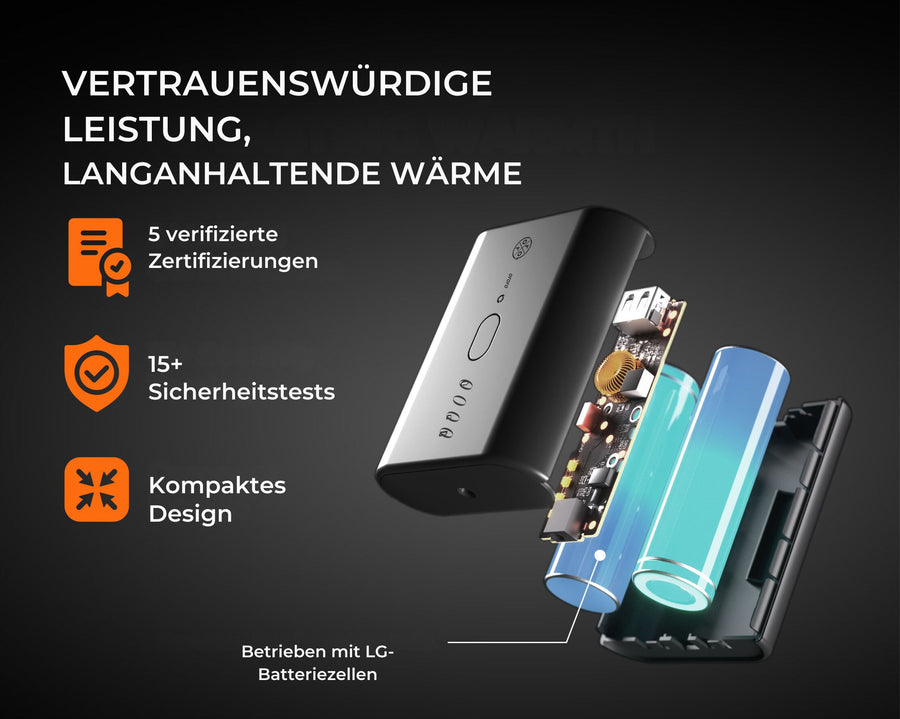 - Bis zu 8 Stunden Wärme: 3 Std. auf High, 4,5 Std. auf Medium, 8 Std. auf Low